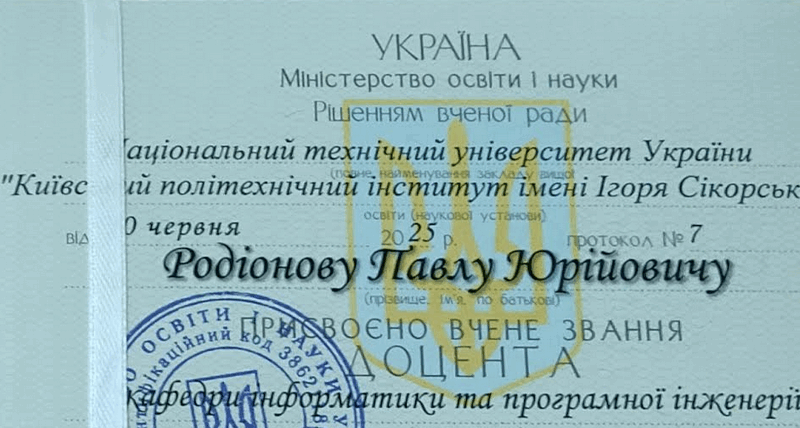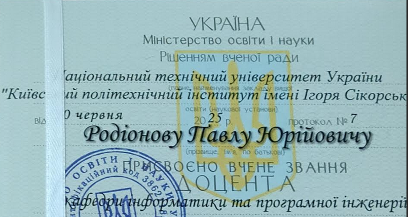Вітаємо нашого доцента, вченого секретаря, Родіонова Павла Юрійовича з присвоєнням вченого звання доцента!